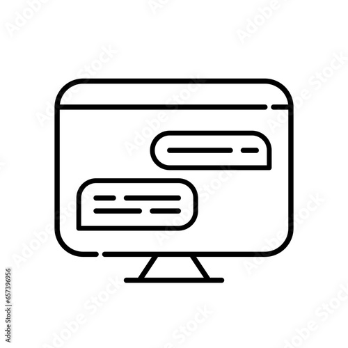 Online forum chat on desktop computer. Pixel perfect, editable stroke icon