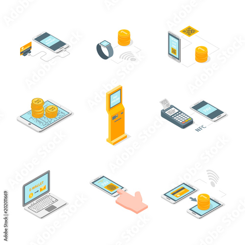Online Payments Signs 3d Icons Set Isometric View. Vector