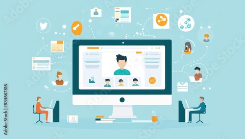 Online Personal Profile Vector Illustration on Computer Screen