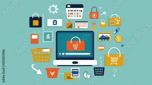 Online purchase process vector, illustrating the steps from adding to cart to making a digital payment
