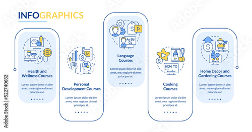 Online tutorials ideas rectangle infographic template. Data visualization with 5 steps. Editable timeline info chart. Workflow layout with line icons. Lato-Bold, Regular fonts used