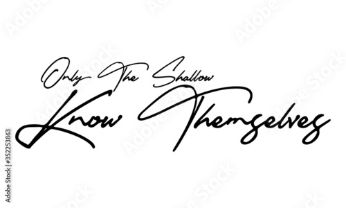 Only the Shallow Know Themselves Cursive Calligraphy Black Color Text On White Background