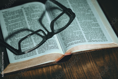 Open Bible with glasses on top
