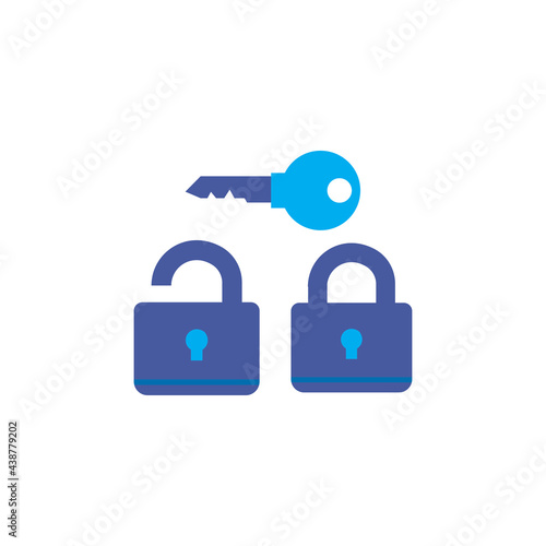 open padlock icon, padlock key logo. secure