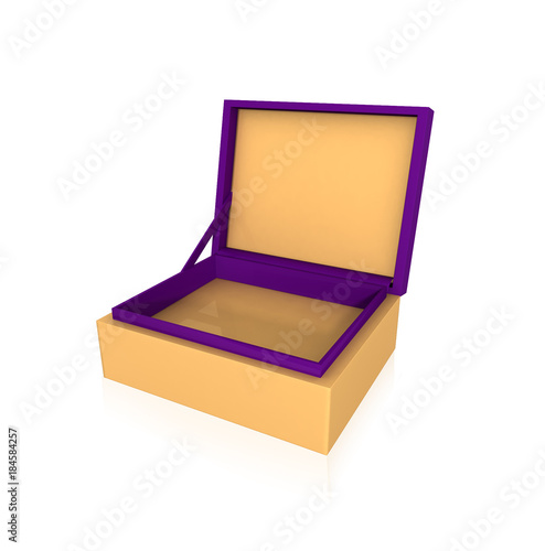 Opened cardboard box for packages,gift set on white floor. 3d rendering
