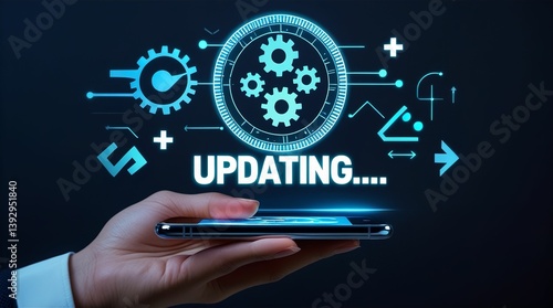 Operating system upgrade concept, installation app and software update process, modernize user equipment, update modern functions, developer released new version Improved security. User is downloading