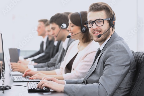 operator call center with colleagues sitting at the workplace
