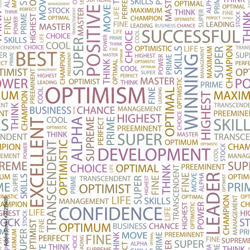 OPTIMISM. Seamless vector pattern with word cloud.