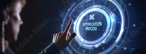 Optimization Software Technology Process System Business concept. Business, Technology, Internet and network concept. 3d illustration