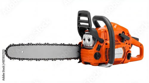 Orange and black gasoline powered chainsaw