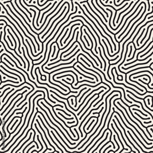 Organic Irregular Rounded Lines. Vector Seamless Black and White Pattern.