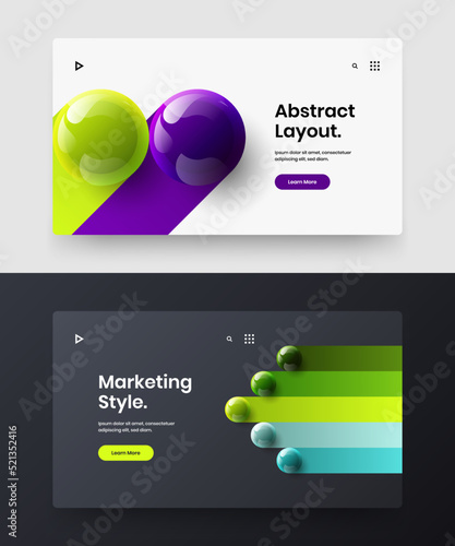 Original site screen vector design concept set. Fresh realistic balls booklet layout bundle.