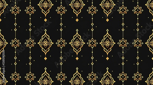 Ornate gold pattern on dark surface, background design for textile or digital applications