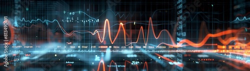 Oscilloscope Display, an oscilloscope screen displaying various waveforms and frequencies, with a range of shapes and amplitudes