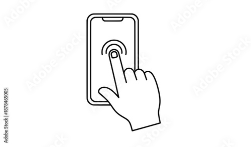 Outline hand tapping smartphone icon vector minimal line