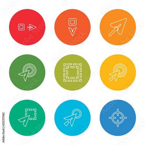 outline stroke target, cursor, selection, cursor, focus, cursor, move, vector line icons set on rounded colorful shapes