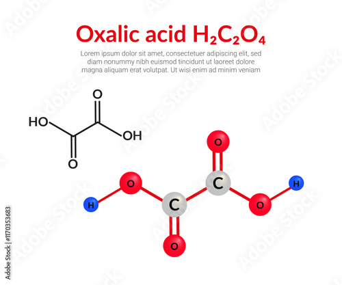 Oxalic acid molecular structure formula (H2C2O4), ball-and-stick model,