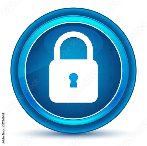 Padlock close icon eyeball blue round button