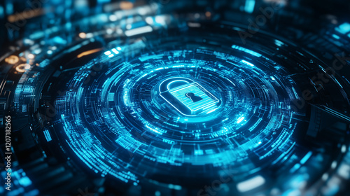 Padlock on binary code background