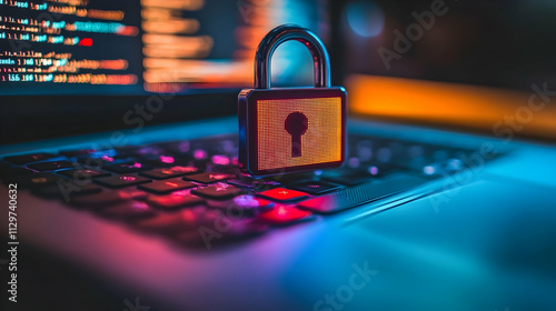 Padlock on laptop keyboard, symbolizing cybersecurity and data protection.