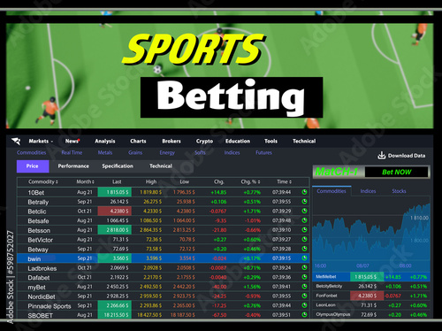 Page of sports betting site with data