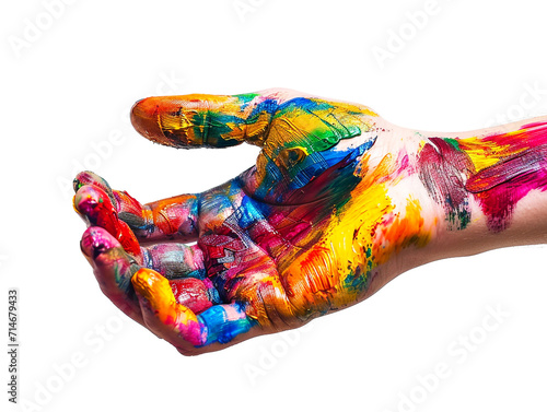 painted hand, front view, isolated on white background. Generative Ai.