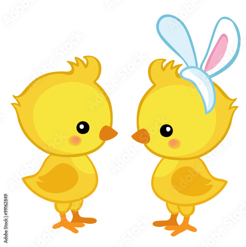 Pair of cute Easter chicks. Vector illustration. Set Isolated separately on white background.