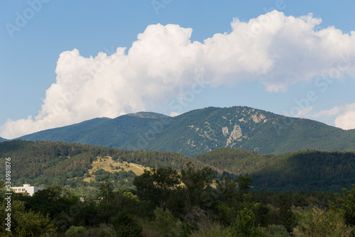 Panoramic terrain of southern Europe. Landscape of Bulgaria-mountains, fields, flora.