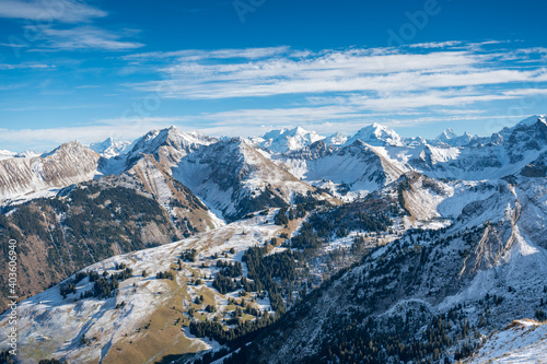 panoramic view from Fromattgrat in Diemtigtal over the Bernese Alps in early winter