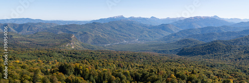 Panoramic view over mountains covered by forest