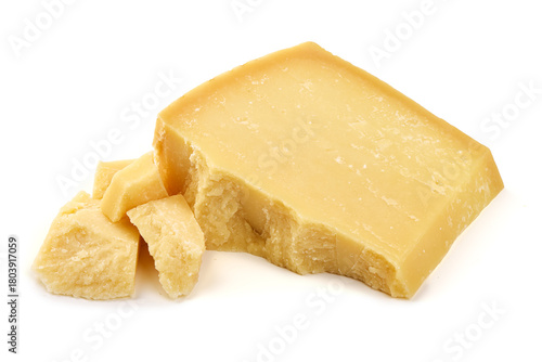 Parmesan Cheese Chunk, isolated on white background