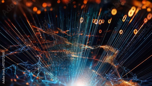 Particle effects with lines and dots and binary code