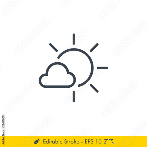 Partly Cloudy Day Weather Icon / Vector - In Line / Stroke Design
