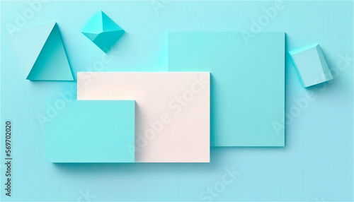 Pastel blue empty paper texture background template, banner for advertising. Rectangular geometric shapes. Copy space. space for text. AI generated.