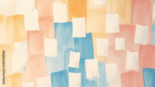 Pastel Painted Wall with Blank Memo Papers Creative Background for Ideas and Notes