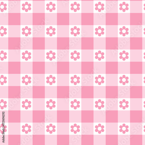 Pastel pink gingham check seamless pattern design with flowers