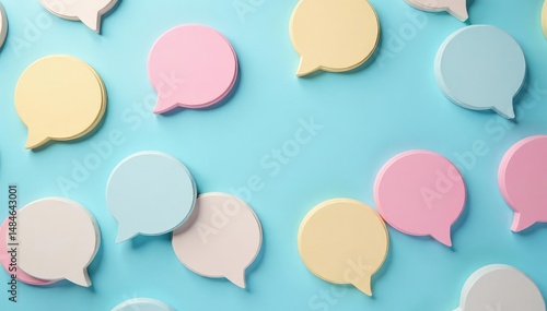 Pastel speech bubbles repeating pattern on soft blue background , print, pastel, speech bubble