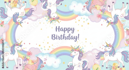 Pastel unicorn rainbow birthday background