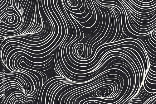 Pattern featuring dotted lines in a swirl shape design, black and white
