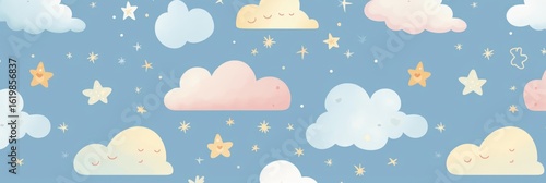 Pattern of clouds with stars children's style
