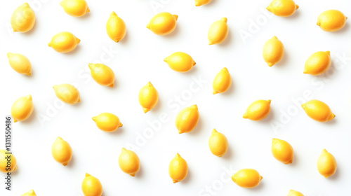 Pattern of fresh yellow lemons on white background