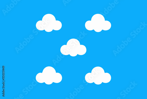 Pattern of Stylized White Clouds on Blue Background Illustration