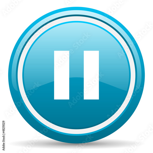 pause blue glossy icon on white background