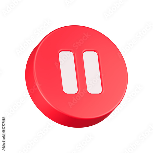 pause button 3d rendering icon red color