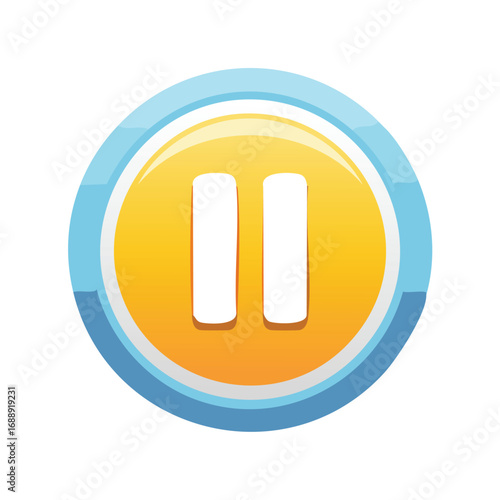 Pause Button Icon in Yellow and Blue Circle - AI Generated