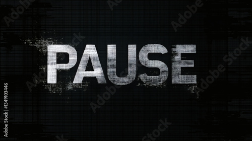 Pause Text on Dark Distressed Gridded Screen Digital Interface for Media Control and Application with Pause Symbol