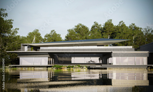 pavilion on the river 3d render illustration