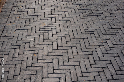Paving stone driveway installation, 90 degree pattern laid by hand.