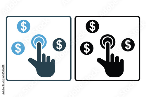 Pay per click icon. hand touch with dollar, click money seo. Solid icon style design. Simple vector design editable