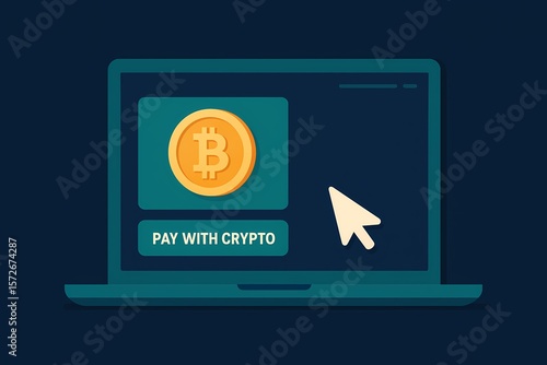 Pay with crypto screen on laptop with Bitcoin icon, AI generated